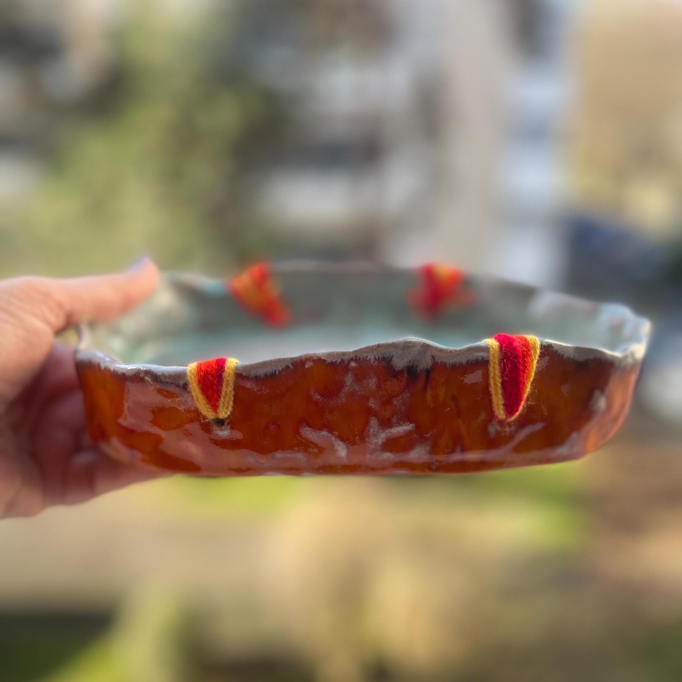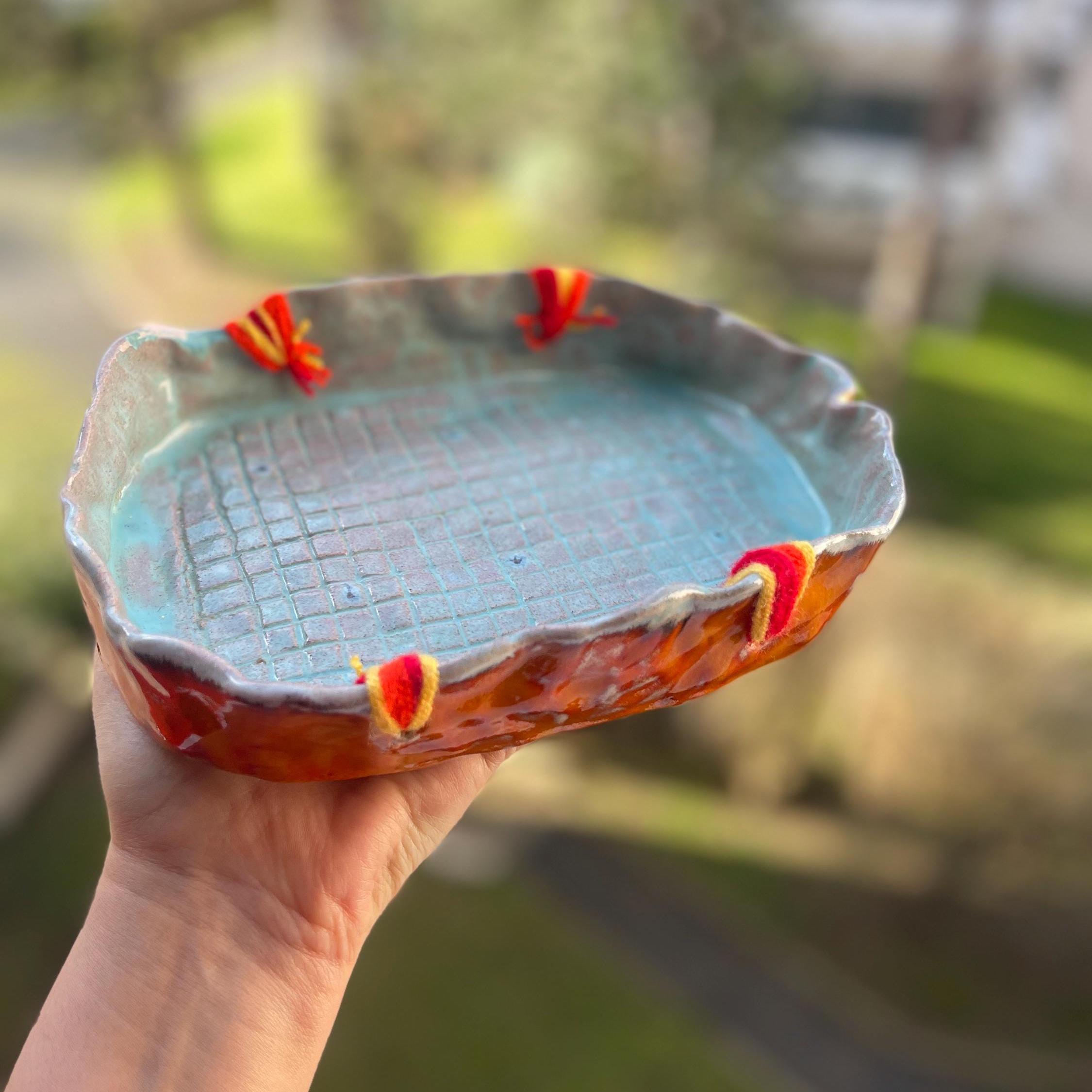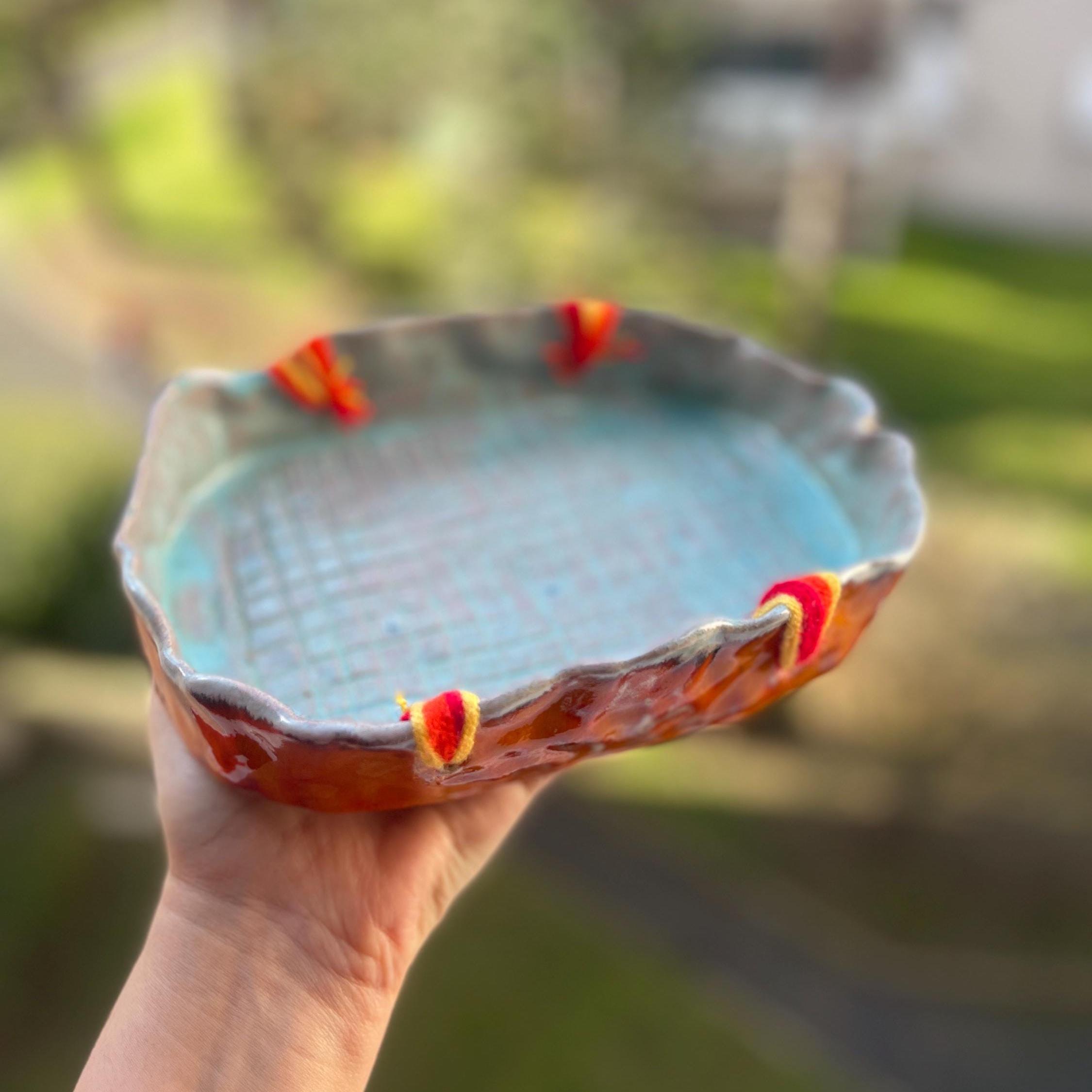 Magnifique assiette en céramique, fait main. Poterie pour décoration, servir de fruits, du fromage, ou assiette d’accompagnement